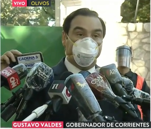 Luego de la presentación del ministro de Economía, Martín Guzmán ante los gobernadores y los funcionarios del Ejecutivo nacional, el gobernador de Corrientes Gustavo Valdés habló con los periodistas en la puerta de la Quinta Presidencial de Olivos.