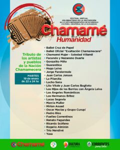En función de celebrar el reciente reconocimiento que recibiera el género, como Patrimonio Cultural Inmaterial de la Humanidad, se lleva adelante desde el viernes y hasta el 24 del corriente, diez transmisiones ininterrumpidas sobre los mejores momentos del Chamamé, en el escenario Sosa Cordero, en esta última década. Esta noche, entre los principales números, se recordarán presentaciones de Juan Carlos Jensen, la Pilarcita, Lito Vitale y Juan Carlos Baglieto, los Hijos de los Barrios con Ángela Leiva, Fuelles Correntinos y Ricardo Scófano, entre otros.