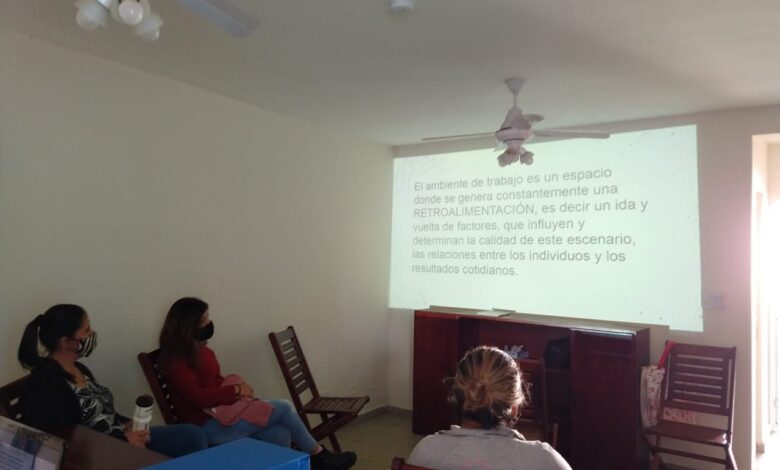 En pequeños grupos, burbujas de 5 personas se desarrollaron los Talleres en ambas localidades, destinados a mejorar el servicio que se presta en los Hogares de Niños y Adolescentes.
