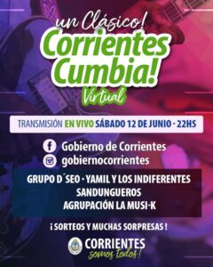 El Corrientes Cumbia y el Teko Chamamé podrán disfrutarse a través del Facebook: Gobierno de Corrientes; Instagram: @gobiernocorrientes, @ctescumbia y @tekochamame; Youtube: TekoChamame Virtual y Ctes Cumbia Virtual y 13 Max.