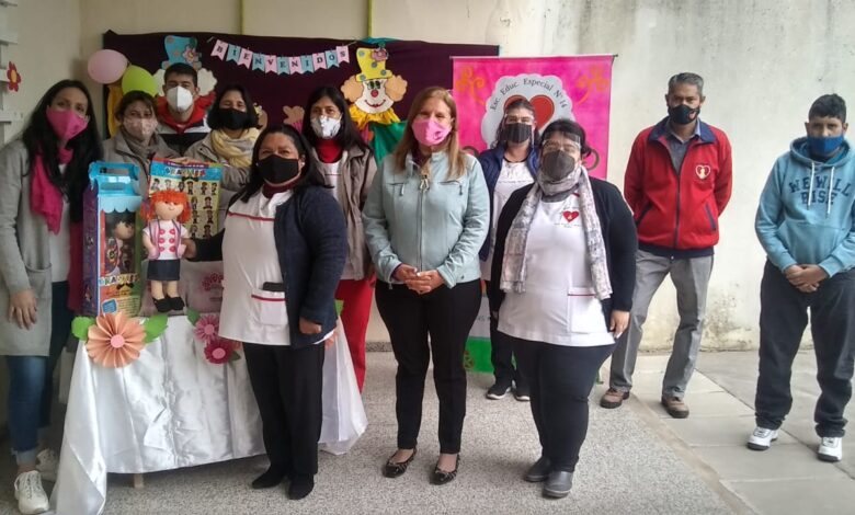 La Directora del Consejo Provincial de Discapacidad, Roxana Tannuri, visitó Santa Rosa donde se reunió con el intendente Pedro Maidana y realizó entrega de zapatillas y kits para mujeres a la Escuela de Educación Especial N°28, donde la concejal Lourdes Pereyra la acompañó y entregó muñecos braillines y kits a la Escuela Especial N°14 de Saladas junto a la concejal Angie Zuviria.