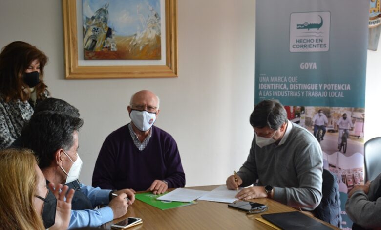 El ministro de Industria, Trabajo y Comercio y el intendente de Goya firmaron un Convenio Marco de Cooperación para ayudar a difundir los productos locales y asistir a emprendedores y empresas. Dispondrán una ventanilla de atención del programa Sello Correntino en una oficina municipal.