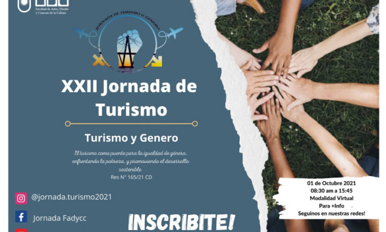 Bajo el lema «El Turismo como puente para la igualdad de género, enfrentando la pobreza y promoviendo el desarrollo sostenible», este 1 de octubre se llevará a cabo un encuentro virtual de 9 a 16. Está abierto al público general y podrán inscribirse rellenando el formulario online que se encuentra en Instagram (@jornada.turismo2021), donde tendrán tiempo hasta las 8 de la mañana del mismo día del evento.