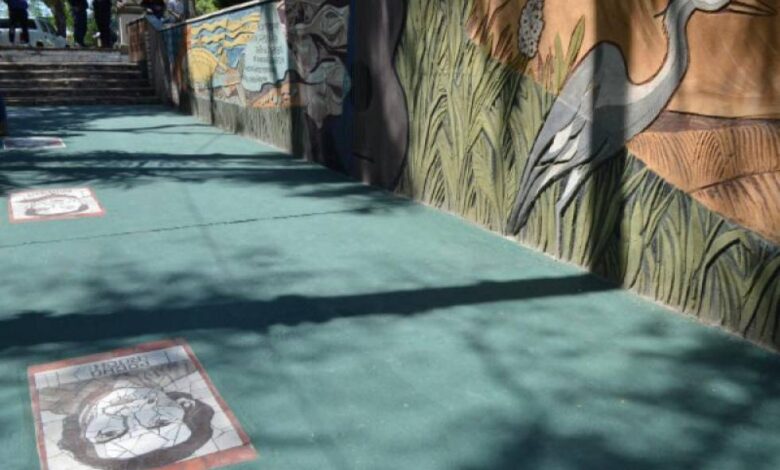 Con técnica de mosaiquismo se instalaron cuatro baldosas con el rostro de Mario Cocomarola, Ramona Galarza, «Pocho» Roch y Ernesto Montiel. Este camino se suma al mural habilitado el año pasado. «Vamos a seguir revalorizando los espacios públicos», dijo Tassano.