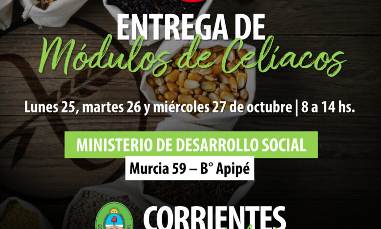 La entrega será en el Galpón de este Ministerio, sito en Murcia 59 del B° Apipé- a través del Programa de Apoyo Nutricional a las Personas Celiacas dependiente de la Dirección de Seguridad Alimentaria cuyo titular es el Dr Lucas Carballo.
