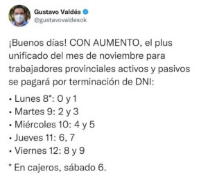 Con las mejoras salariales resueltas por el gobernador Gustavo Valdés, otorgadas entre octubre y noviembre, el Gobierno Provincial aumentó el Adicional Mensual Remunerativo (Plus Unificado) en alrededor del 40% en los últimos nueve meses.