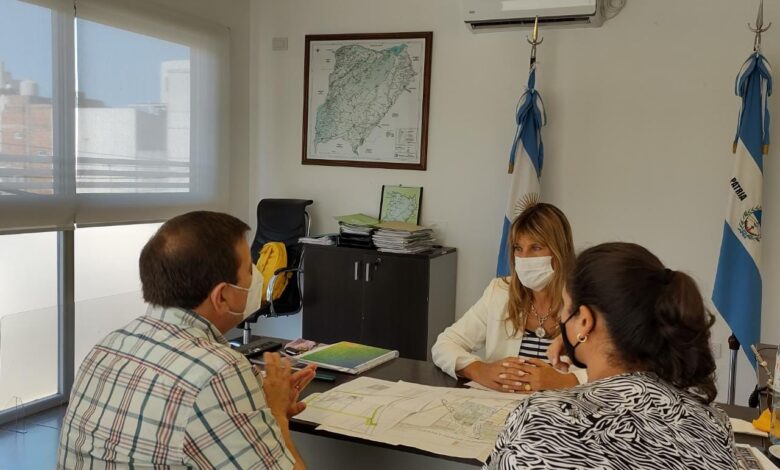 Gabur junto a la directora de Parques Industriales, Natalia Tatarinoff, y el inspector de la obra del Parque por el Ministerio, Pierdo Colombo, mantuvieron una reunión de trabajo en la que repasaron las tareas ejecutadas y las obras restantes.