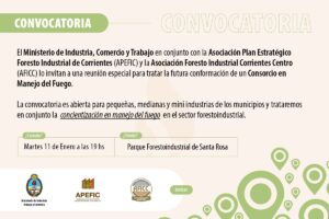 La reunión es extensiva a industriales de la zona y la organización está a cargo del Ministerio de Industria, Trabajo y Comercio de la Provincia, la Asociación Plan Estratégico Foresto Industrial de Corrientes (APEFIC) y la Asociación Foresto Industrial Corrientes Centro (AFIC).