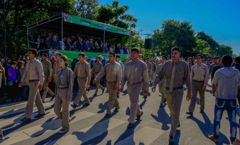 En el último y masivo evento de la jornada, desfilarán las fuerzas de seguridad mencionadas al compás de las Bandas de Música de la Policía de Corrientes y del Servicio Penitenciario Provincial, como así también 32 establecimientos escolares de los niveles inicial y primario.