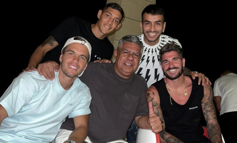 «Con los pibes de la Scaloneta», escribió el presidente de la AFA en una foto que publicó en sus redes sociales junto a Rodrigo De Paul, Ángel Correa, Nahuel Molina y Giovanni Lo Celso.