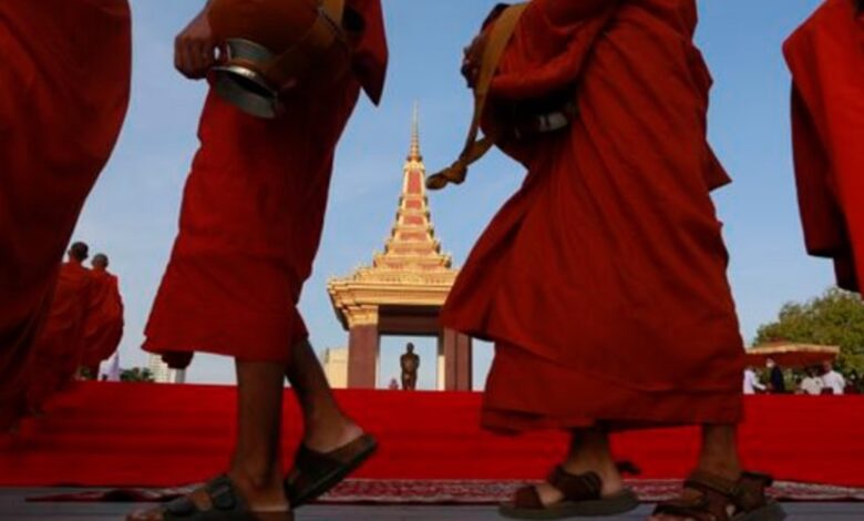 El ritual del mérito implica que los fieles dan comida a los monjes para realizar buenas acciones.