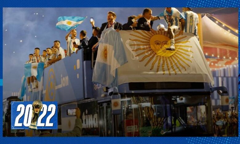 Los festejos en las calles de Qatar se decidieron después de una larga celebración con los familiares de los jugadores sobre el campo de juego, tras la ceremonia de premiación en la que, además de la copa, el plantel argentino se adueñó de otros tres trofeos.