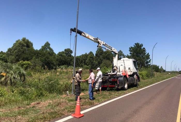 Se está llevando adelante la colocación de columnas lumínicas en el acceso principal zona oeste. En total son 60 nuevas columnas, con sus artefactos lumínicos, destinadas a mejorar el alumbrado público.
