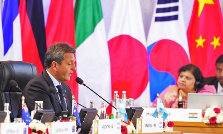 Al exponer en la segunda jornada de la Cumbre del G20 de Ministros de Finanzas y Gobernadores de Bancos Centrales, en la ciudad india de Bengaluru, Massa señaló además que la pandemia, la guerra e Ucrania y la sequía por el cambio climático «condicionan la seguridad alimentaria global y desarrollo económico».