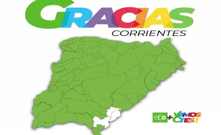 Con el posteo de un mapa verde, ECO+ Vamos Corrientes agradeció el apoyo en las urnas que ratificó el poderío del oficialismo en Corrientes.