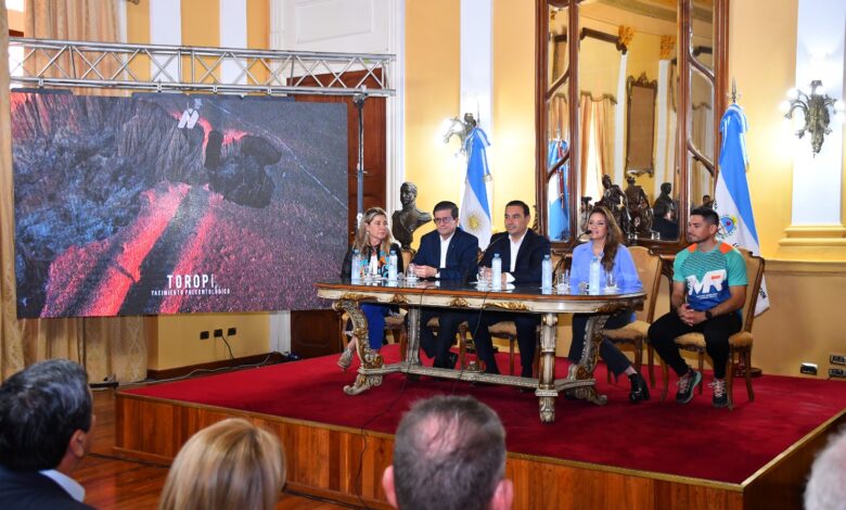 “Queremos que se conozcan los circuitos de running que tiene la provincia y que se van consolidando en el tiempo”, comenzó el mandatario en función de darle visibilidad al Toropí Trail Run “que cuenta con una belleza natural increíble”, recordando que la zona donde se convocará a los participantes es un espacio paleontológico.