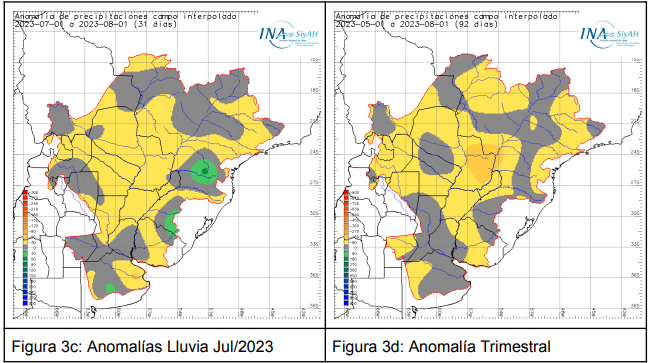 En caso de establecerse el ENOS en los próximos meses, podría promover mayores lluvias en los tramos medios de los ríos Paraná y Uruguay. Con respecto al pronóstico trimestral, las precipitaciones podrían ser superiores a la normal en la cuenca superior del río Uruguay, cuenca del río Iguazú, y para los tramos alto y misionero-paraguayo del río Paraná.