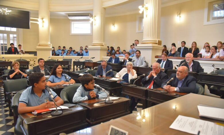 Asistieron a la sesión alumnos del Colegio Secundario San Cayetano, acompañados por el profesor y Rector Darío Pérez, quienes hicieron uso de la palabra.
