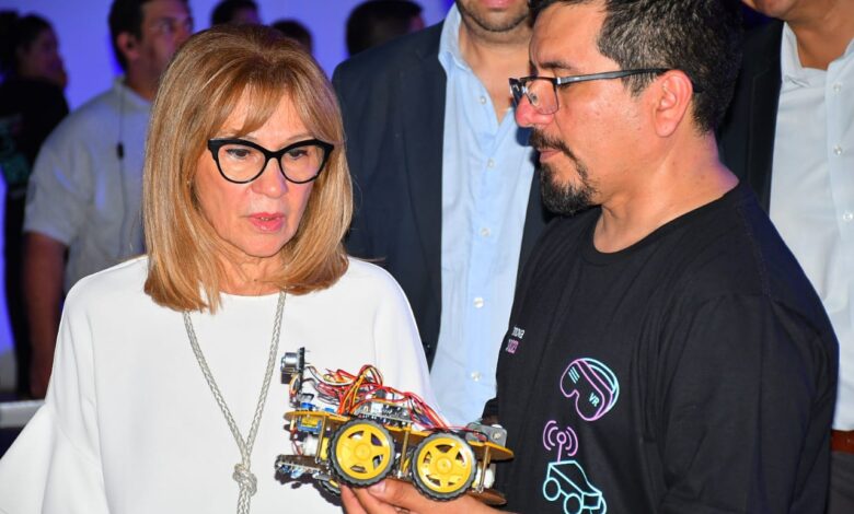 Seguidamente, la titular de la Cartera Educativa manifestó que “este no es el primero, empezaron en la Feria del Libro, después se fueron expandiendo, empezamos con la capacitación en inteligencia artificial para llegar a hoy a esto, que es único en su forma” y añadió que “van a ver talleres para Primaria, para Secundaria y para el Nivel Inicial, que hemos crecido tanto realmente ahí, entregando esos robotitos”.