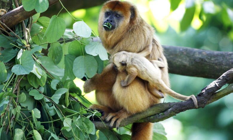 Los monos aulladores negros y dorados (Alouatta caraya) están categorizados como «Vulnerables» para Argentina y toleran niveles moderados de deforestación.