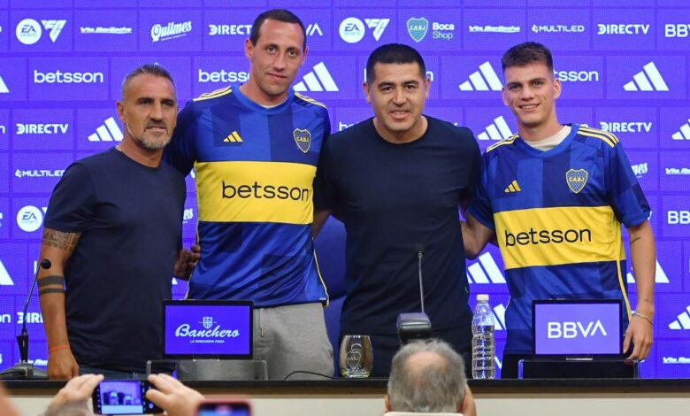 Juan Román Riquelme encabezó el acto de presentación de los futbolistas, quienes destacaron el «sueño» que les representaba haber llegado al club.