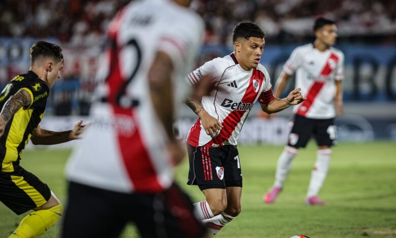 Con Sebatián Driussi por enésima vez sin crear peligro y Facundo Colidio también intrascendente dentro del área rival -volverán a ser titulares en 2026 sin haber hecho ningún mérito-, River sumó 45 minutos sin patear al arco, jugando otra vez en tercera velocidad, sin sorpresa, espeso, lento, hasta que en el tiempo adicionado llegó esa conexión aislada de Juanfer-Viña.