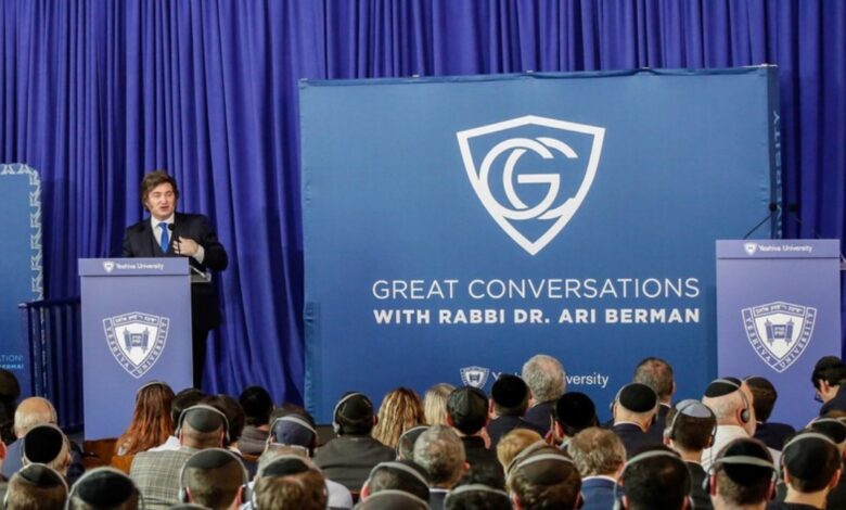 El presidente Javier Milei disertó este lunes en la Universidad Yeshiva de Nueva York ante un auditorio integrado principalmente por estudiantes y referentes de la comunidad judía, donde volvió a expresar su respaldo político a Estados Unidos e Israel en el escenario internacional.