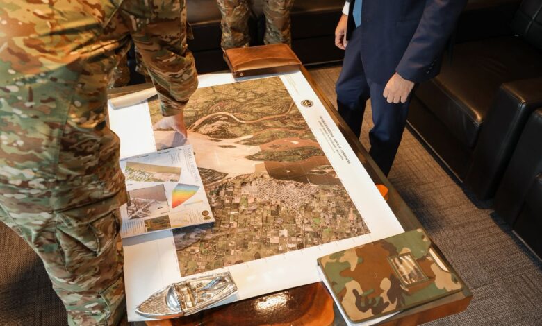 El gobernador de Corrientes, Juan Pablo Valdés recibió este miércoles en el Centro Administrativo de la capital provincial al Comandante de la Primera División de Ejército, General de Brigada Guillermo Mander y al Jefe del Batallón de Ingenieros Anfibios 121, Teniente Coronel Pablo Campi para analizar «en profundidad distintos aspectos territoriales, logísticos y técnicos» del proyecto del cruce de balsas entre Bella Vista – Villa Ocampo para unir de este modo a las provincias de Corrientes y Santa Fe, afirmando que este avance «será un hito estratégico para el desarrollo económico de la región».